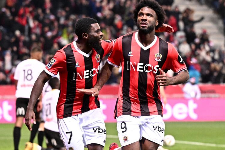 Pemain OGC Nice, Terem Moffi dan Jeremie Boga, menerima serangan dari suporter fanatik.
